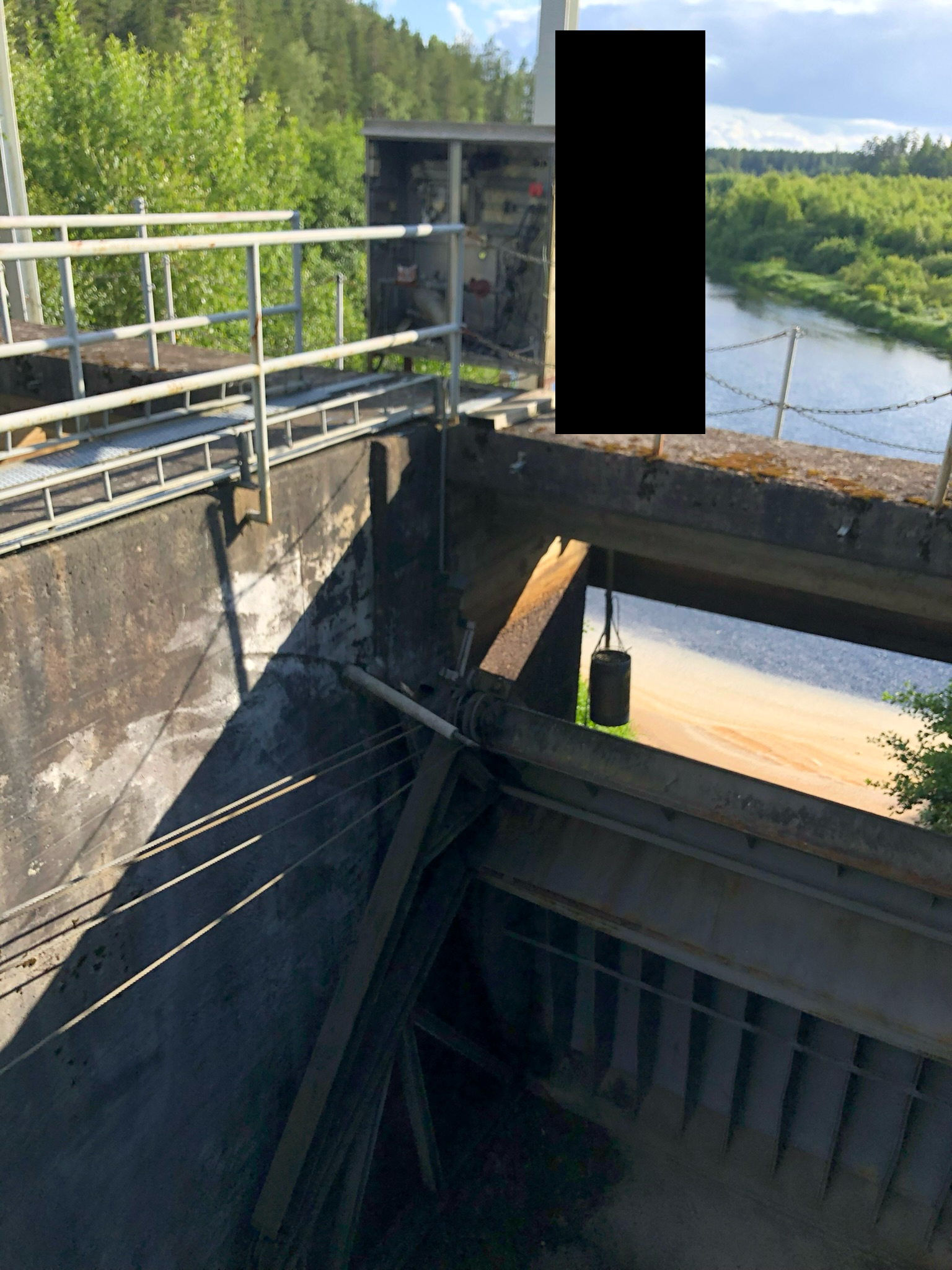 Redacted person standing on top of one of the dams (the one that did not collapse)